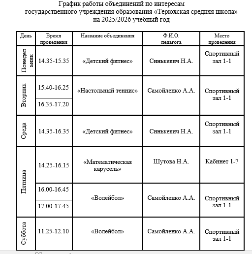 - График работы объединений по интересам государственного учреждения образования «Терюхская средняя школа»