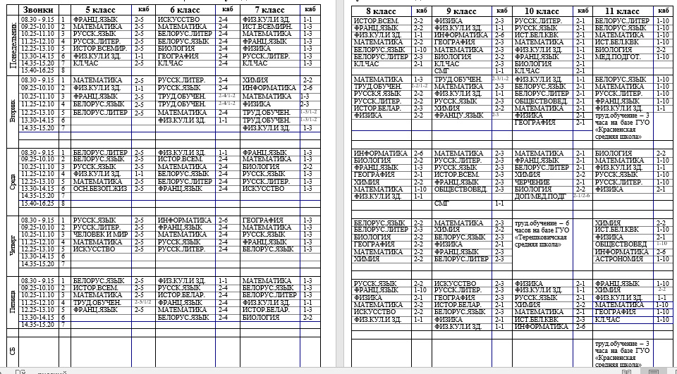 - График работы объединений по интересам государственного учреждения образования «Терюхская средняя школа»