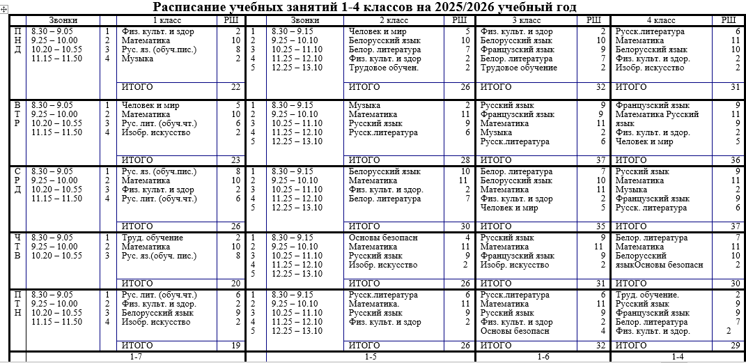 Расписание учебных занятий 1-4 классов